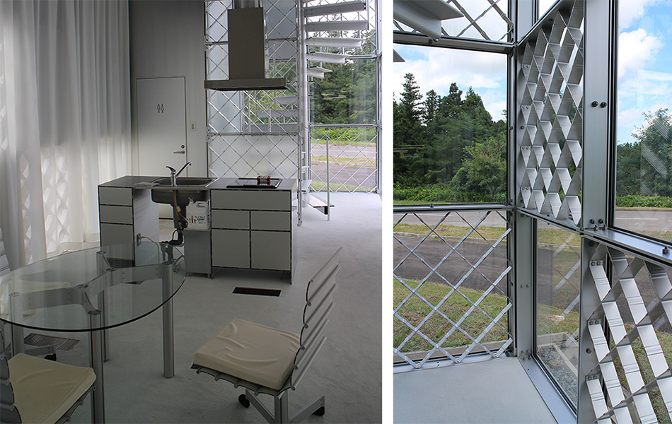 家具も含めて、ほぼアルミとガラスだけでできた近未来的な空間。11年前の完成ですが。