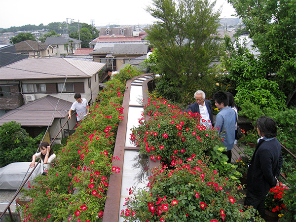 これも、折板サンドイッチパネルによるモノコック構造。すべてのパネルが全溶接で一体化され防水も不要、屋上庭園の植栽も鉄の箱そのままのなかに。サッシもコールテン鋼でつくるという徹底された美学。