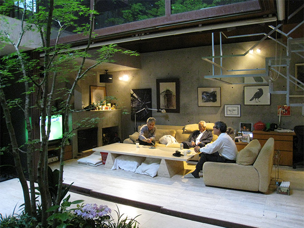 地下の居間は10m×10mの広さで、1/4を屋外に。密集した住宅地に立地するとは思えない静かで豊かな空間が広がっています。