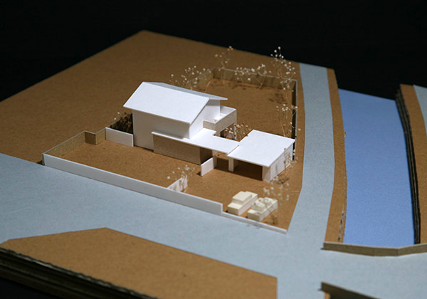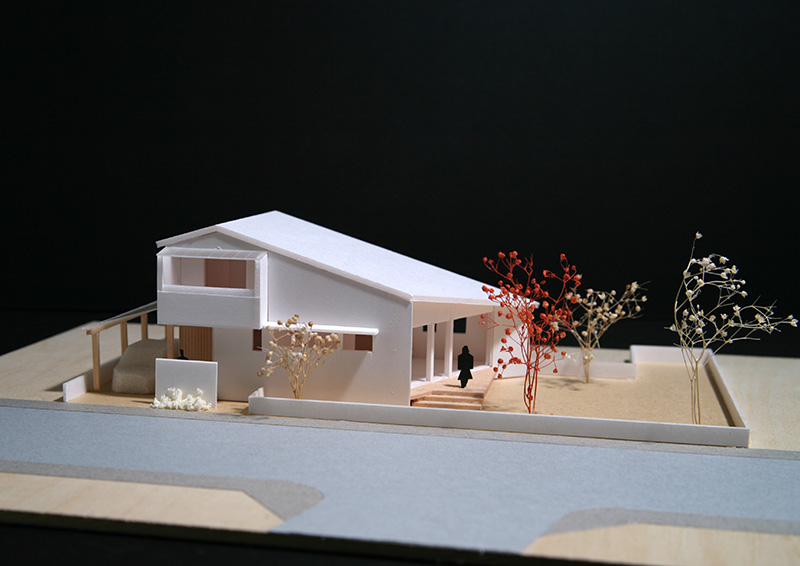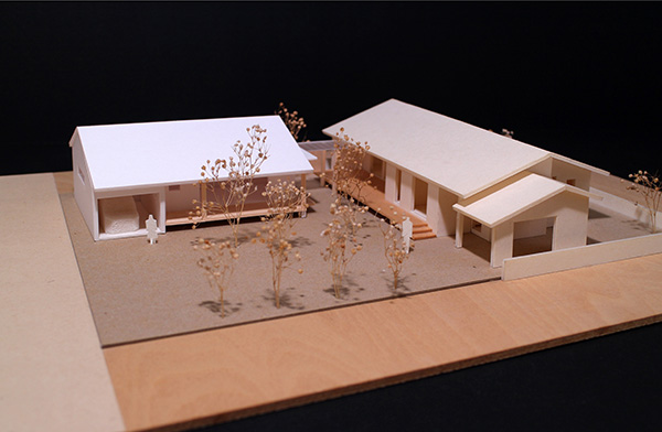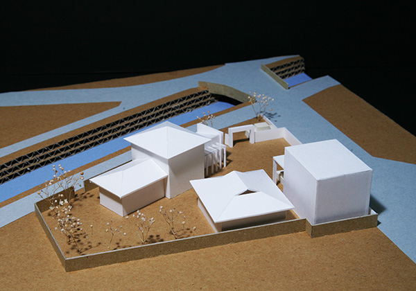 下の模型写真は、すべて新築で建てなおす案です。制約条件が少なくなればなるほど難しい。 これも外部空間をどう分節化し、内部とつなげるかを考えました。